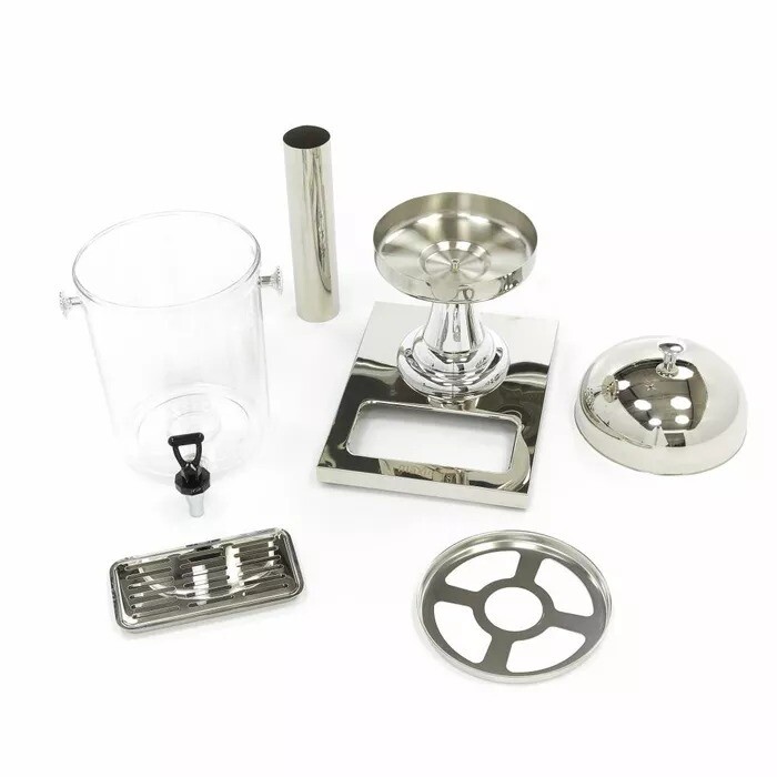 A vantagem deste dispensador de bebidas é que pode utilizá-lo sem electricidade. O líquido é mantido fresco no depósito 100% livre de BPA, graças a um tubo de aço inoxidável cheio de gelo. O corpo do dispensador é feito de aço inoxidável e tem um recipiente transparente. A base robusta e o design moderno garantem que o doseador se mantém no lugar durante a utilização e também tem bom aspecto. Para levantar o doseador, utilizar as alavancas convenientes